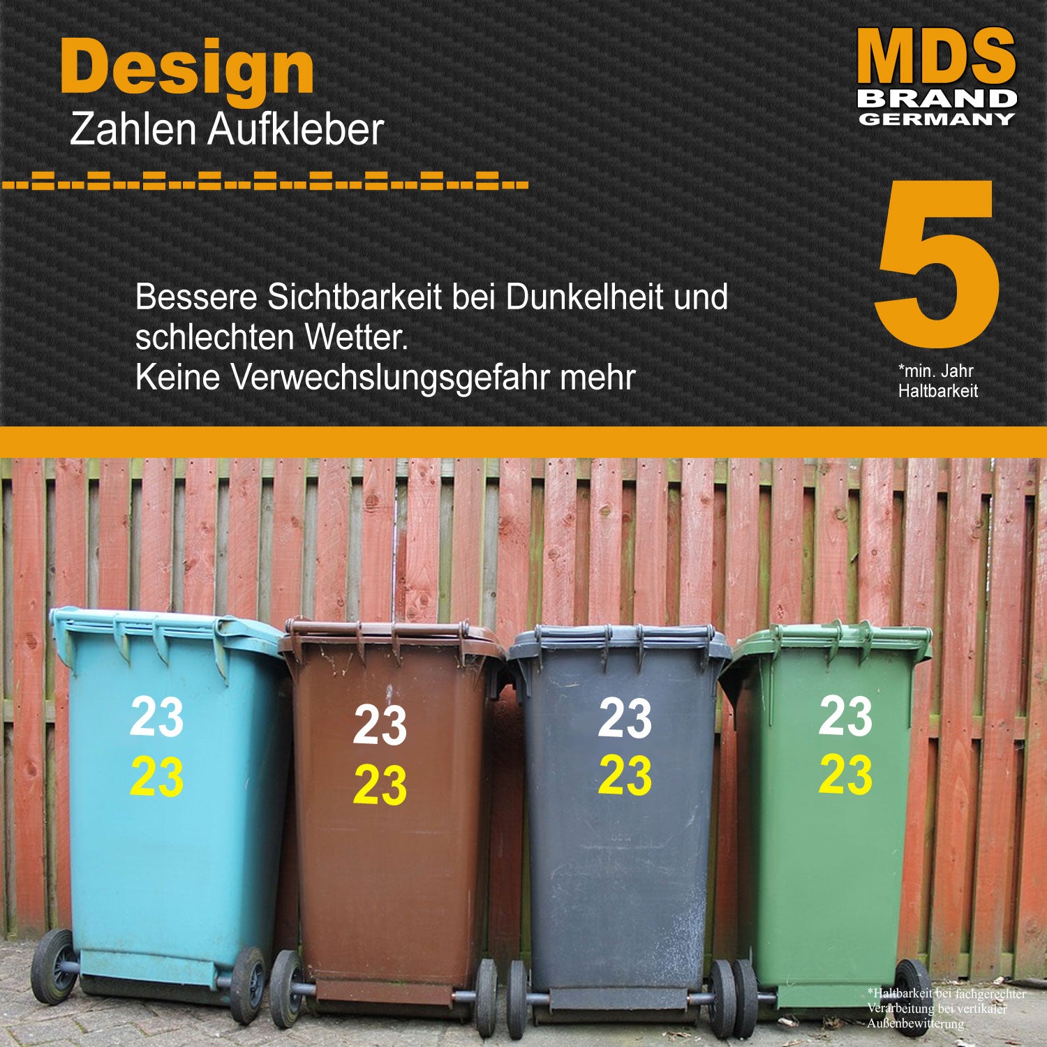 - 1x Zahlen Aufkleber: Die Zahlen Aufkleber sind 15cm hoch für gut lesbare Zahlen an Türen oder Mülltonnen.